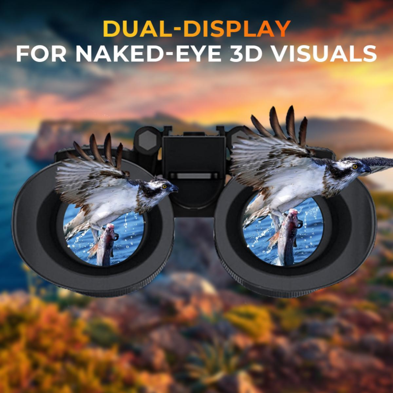 • The 4K night vision binoculars are built with dual 1.4" 390 * 390 TFT screens, with 7 adjustable brightness levels. Equipped with stunning naked-eye 3D display technology, the night vision goggles faithfully restore the lifelike three-dimensional scenes your eyes see. Your bird-watching or wildlife observation will be more immersive and clearer than ever before.