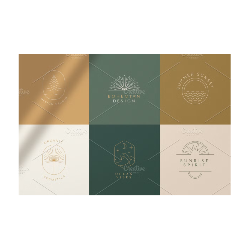 Bohemian logos - a new set of vector design elements and templates. Abstract logos and branding elements in trendy linear minimal style, emblems, and badges for design studios, shops, female businesses, and handcrafted products.