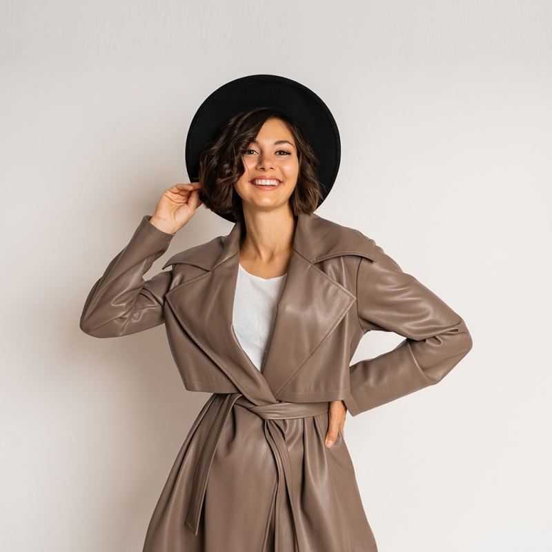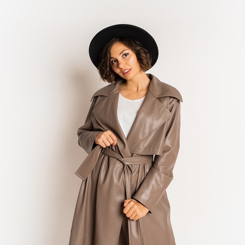 المرأة براون الصلبة الخط المفتوح معطف خندق الخط الطويل مع حزام