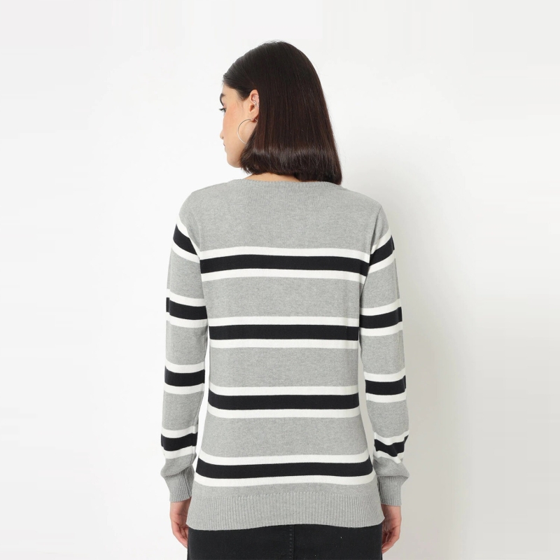 Striped Round Neck Casual Women Multicolor Sweater