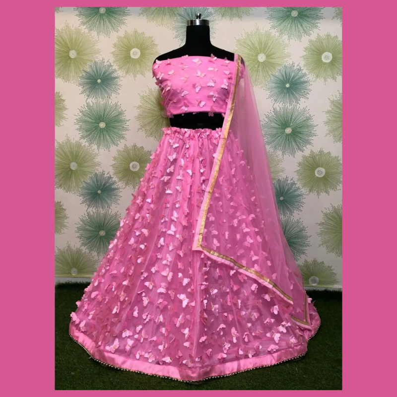 نقدم لكم Designer Net 3D Butterfly Work Lehenga Choli المذهل مع Dupatta باللون الوردي. تم تصميم هذا lehenga باهتمام رائع بالتفاصيل ، وهو شهادة حقيقية على فن النسيج. يضيف تصميم الفراشة ثلاثية الأبعاد طبقة من العمق والتعقيد ، مما يخلق تأثيرا بصريا ملفتا للنظر يكمل بشكل جميل لوحة الألوان النابضة بالحياة. دوباتا ، وشاح تقليدي ، هو إضافة أنيقة لهذه المجموعة ويعزز الراحة والأناقة. يعد Designer Net 3D Butterfly Work Lehenga Choli مع Dupatta باللون الوردي مثاليا لمختلف المناسبات مثل الحفلات وحفلات الزفاف والاحتفالات. يضمن نسيجها خفيف الوزن والمسامي أنه يمكنك الاستمتاع الكامل بالاحتفالات دون الشعور بالإثقال. توفر المادة الشبكية الناعمة تآكلا مريحا ، حتى أثناء الاستخدام المطول. تم تصميم lehenga لإضفاء لمسة جذابة على جميع أنواع الجسم ، مما يوفر صورة ظلية أنيقة وجذابة وأنيقة وعملية.