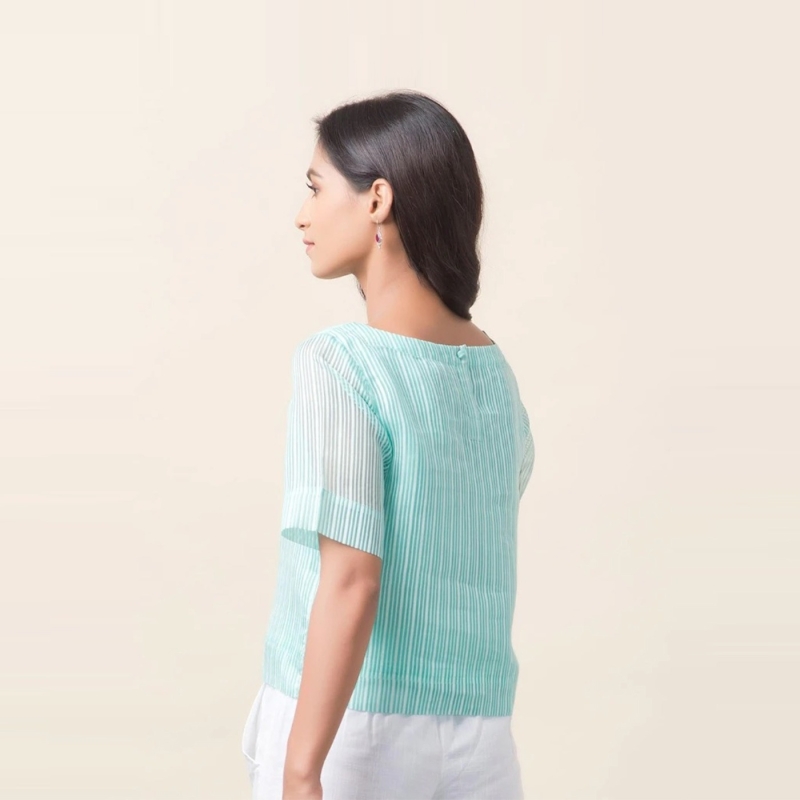 فيسكوز الحرير مخطط بلوزة قصيرة